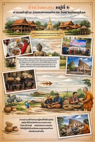 CDD พิษณุโลก : สพอ.พรหมพิราม ✨ บ้านวังมะสระ หมู่ที่ 6 ตำบลท่าช้าง อำเภอพรหมพิราม จังหวัดพิษณุโลก เป็นชุมชนที่มีอัตลักษณ์โดดเด่นและยังคงรักษาวิถีชีวิตแบบดั้งเดิมไว้อย่างเข้มแข็ง ชาวบ้านร่วมกันสืบสานภูมิปัญญาท้องถิ่นผ่านกิจกรรมต่าง ๆ ทั้งอาหารพื้นถิ่น หัตถกรรม และประเพณีทางวัฒนธรรม บ้านวังมะสระจึงเป็นอีกหนึ่งชุมชนที่น่าสนใจและควรค่าแก่การเข้าเยี่ยมชมและเรียนรู้